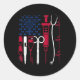 Pegatina Redonda Herramienta De Enfermería Bandera Americana Orgull