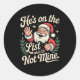 Pegatina Redonda He's On The List Not Mine Santa Retro Christmas