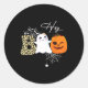 Pegatina Redonda Hey Boo Cute Ghost Pumpkin Face Halloween