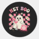 Pegatina Redonda Hey Boo Groovy Cute Ghost Funny Halloween Mujeres