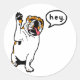 Un bulldog personalizado diciendo "hey". ¡Ahora disponible en botones y pegatinas!