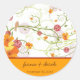 Pegatina Redonda Hibiscus Amarillo Swirls y Swallow Floral Boda