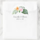 Este colorido pegatina favorece la decoración de los hibiscos acuáticos y el follaje tropical. Las bonitas flores de los hibiscos acuden en tonos melocotón y naranja, con palmeras tropicales y toques verdes. Es una elección perfecta para bodas en la playa, bodas de destino, bodas tropicales, luaus, fiestas y más. Personalice el texto deseado editando el texto de ejemplo en la plantilla de diseño fácil de usar. ¡Aloha!
