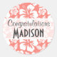 Pegatina Redonda Hibiscus Tropical Rosa Coral