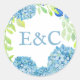 Pegatina Redonda Hidrangea azul Boda sofisticado