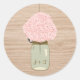 Pegatina Redonda Hidrangea rosa Rubor y ducha de novia Mason Jar