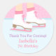 Pegatinas para decorar las bolsas de regalo y favores para una fiesta de cumpleaños de patinaje sobre hielo! Se centra en los pies de un chica que lleva un par de patines blancos con cordones rosados y hojas de patín. Ella está patinando en una pista de patinaje sobre hielo. Fantástico para chicas de cumpleaños de edades que van desde los adolescentes a los adolescentes. Personaliza fácilmente con tu mensaje de agradecimiento!