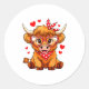Pegatina Redonda Highland Cow Valentines Day Funny Hearts Valentine
