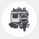 Diseño de Guay con un ilustracion de un reproductor de casetes con una ciudad arriba, árboles debajo y leyenda "Alive".