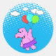 Pegatina Redonda Hipo Rosa Volando Con Globos