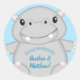 Pegatina Redonda Hippo Baby Shower Blue