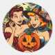 Pegatina Redonda Historietas de Chicas de Halloween de época
