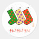 ¡Este Ho! ¡Ho! ¡Ho! Mod Stockings Merry Christmas Classic Round Pegatina presenta tres medias alegres salpicadas de polka en verde/rojo, maíz/púrpura y rojo/verde. ¡Se asemeja perfectamente con mi Ho! ¡Ho! ¡Ho! Mod Stockings Merry Christmas Card, y se verá genial en todos tus paquetes y envíos de correo, también. Así que, que empiece el envoltorio de vacaciones . ... ¡y una alegre, alegre y alegre Navidad con puntos de polka para ti! (Ho! ¡Ho! ¡Ho! ... ... .)
