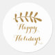 Pegatina Redonda Hoja Rustica Dorada Elegante Blanco Simple
