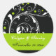 Pegatina Redonda Hojas de desplazamiento negro, boda verde Guardar