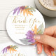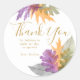 Etiquetas de agradecimiento personalizadas con tipografía dorada elegante y hermoso follaje de otoño. Las delicadas hojas de otoño están en colores de otoño verde, naranja y púrpura. Un diseño estacional colorido para cualquier ocasión - por favor, explore mi tienda - colección Hojas de Octubre - para invitaciones y decoración del día del evento.