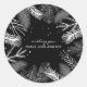 Pegatina Redonda Hojas de pino blanco y negro con nieve