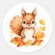 Pegatina Redonda Hojas otoñales personalizadas de ardilla animal pu