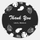 Pegatina Redonda Hojas Tropicales Negras y Blancas Fiesta Elegante
