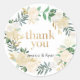 Personalizado Gracias pegatinas por tus favores matrimoniales con flores blancas y doradas. También están disponibles diseños de correspondencia. © Mini Impresiones Moi