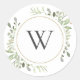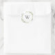 Pegatina Redonda Hojas verdes de primavera suave Monograma inicial