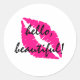 Pegatina Redonda Hola hermosa con lápiz labial rosa