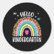 Pegatina Redonda Hola Kindergarten Rainbow De vuelta al profesor es