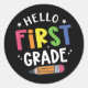 Pegatina Redonda Hola primer grado de vuelta a la escuela