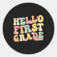 Pegatina Redonda Hola primer grado equipo Chica de primer grado de