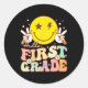 Pegatina Redonda Hola primer grado Hippie Sonrisa cara 1er grado at