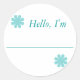 Conoce y saluda a este lindo pegatina solapa. Cuenta con dos recortes de margarita y un lugar para que sus huéspedes escriban sus nombres.