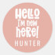 Pegatina Redonda Hola, soy nuevo aquí el anuncio de nacimiento mode
