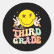 Pegatina Redonda Hola tercer grado Hippie Smile Face 3º grado de vu