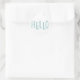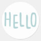 Pegatina redonda con saludo de tipografía “HELLO” en azul claro para decorar, envolver regalos, sellar tus sobres.