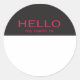 Pegatina circular con la tradicional frase "Hola mi nombre es" en color rosa caliente sobre negro para una presentación única y divertida. Solicite una variedad de pegatinas de 'hola mi nombre único' de esta tienda y deje que la gente en su evento elija su estilo. O elija uno que corresponda a su tema de evento.