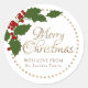 Pegatina Redonda Holly and Berries Personalized Merry Christmas