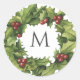 Pegatina de Boda de Invierno de los Navidades de Monograma de Holly Berries Wreath