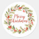 Pegatina Redonda Holly Berry Watercolor Navidades Wreath
