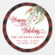 Pegatina Redonda Holly Modern plaid red script Happy Holidays