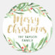 Pegatina Redonda Holly Wreath Merry Christmas