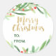 Pegatina Redonda Holly Wreath Merry Christmas Name