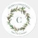 Pegatina Redonda Holly Wreath Monograma Feliz Navidad