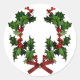 Pegatina redonda con una imagen vintage de dos brotes de hueso con bayas rojas atadas en la parte inferior con un arco satinado rojo para formar una corona. Vea confección, etiqueta y papel de envoltura correspondiente. Vea toda la colección de etiquetas de Navidad en la categoría CARDS & PEGATINAS en la sección VACACIONES.