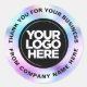 Personalice fácilmente este nombre de logotipo del Personalizado Holograph sencillo y llamativo Web Gracias Pegatina redondeado clásico, añadiendo el logotipo de su empresa y el texto de su círculo personalizado. Añade tu propio lema o dirección de sitio web para promocionar tu empresa, sube tu logotipo, imagen, gráfico, clipart. Cambiar el tipo de letra de texto eligiendo entre una enorme colección de tipos de letra serif, sans serif, decorative, manuscrito y script. Diseñado con texto que se ajusta a la forma de la etiqueta pegatina redonda. Perfecto para su fiesta corporativo, ducha de bebé, favores matrimoniales, etiquetas de entrega de fiestas de negocios, para expresar su gratitud a sus clientes o invitados, o para dar una mirada moderna y profesional al personal de ventas, personal de oficina o asociados.