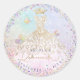 Pegatina Redonda Holographic Confetti Quinceanera White Gold Gown C