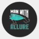 Pegatina Redonda Hombre Con Pescador De Pescador De Pun De Altura C