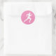 Pegatina Redonda Hombre corriendo una silueta sobre fondo rosado