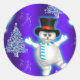 Pegatina Redonda Hombre de nieve bailando en Navidad azul