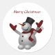 Hombre de nieve con gorra y guantes Pegatina redondo clásico