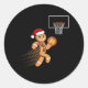 Pegatina Redonda Hombre jengibre jugando al Navidad de baloncesto C